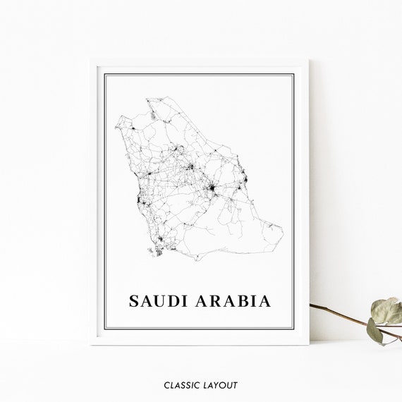 Saudi Arabia Map Print, Road Map Art Poster, KSA المملكة العربية